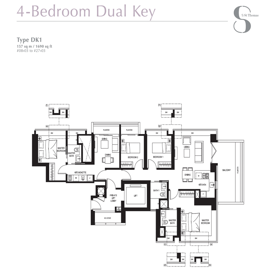 | Unit Types | 1 Bedroom : 441 - 517 sq ft 2 Bedroom : 807 - 1044 sq ft 3 Bedroom : 1,141 - 1,302 sq ft 4 Bedroom : 1,744 - 1,755 sq ft 4 Bedroom Dual Key: 1,690 sq ft Penthouse: 2,422 - 2,659 sq ft |