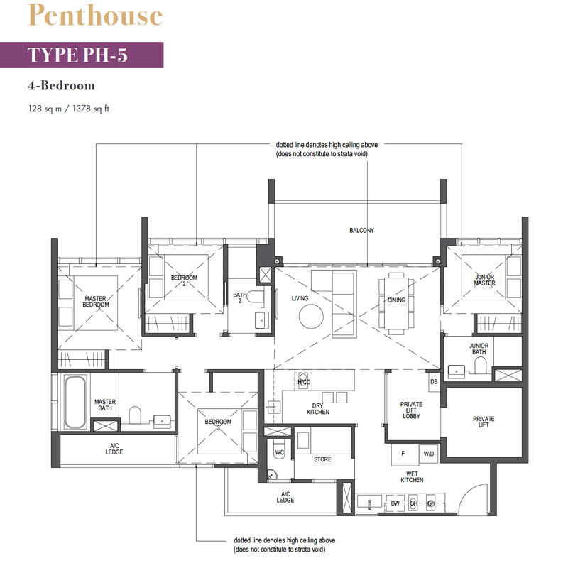 | Unit Types | 1 Bedroom : 463 sq ft 2 Bedroom : 667 sq ft 3 Bedroom : 1,163 sq ft 3 Bedroom with Study : 1,281 sq ft 4 Bedroom : 1,378 - 1,389 sq ft |