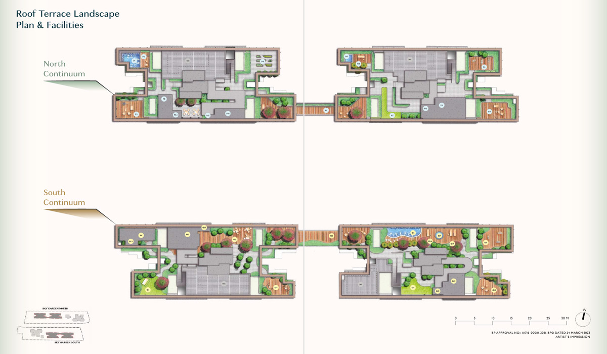 The North Continuum, located at 1 Thiam Siew Avenue, 3 Thiam Siew Avenue, and 5 Thiam Siew Avenue, and the South Continuum at 2 Thiam Siew Avenue, 6 Thiam Siew Avenue, and 8 Thiam Siew Avenue, will be connected by a private skywalk, allowing residents to access facilities on both sides.
